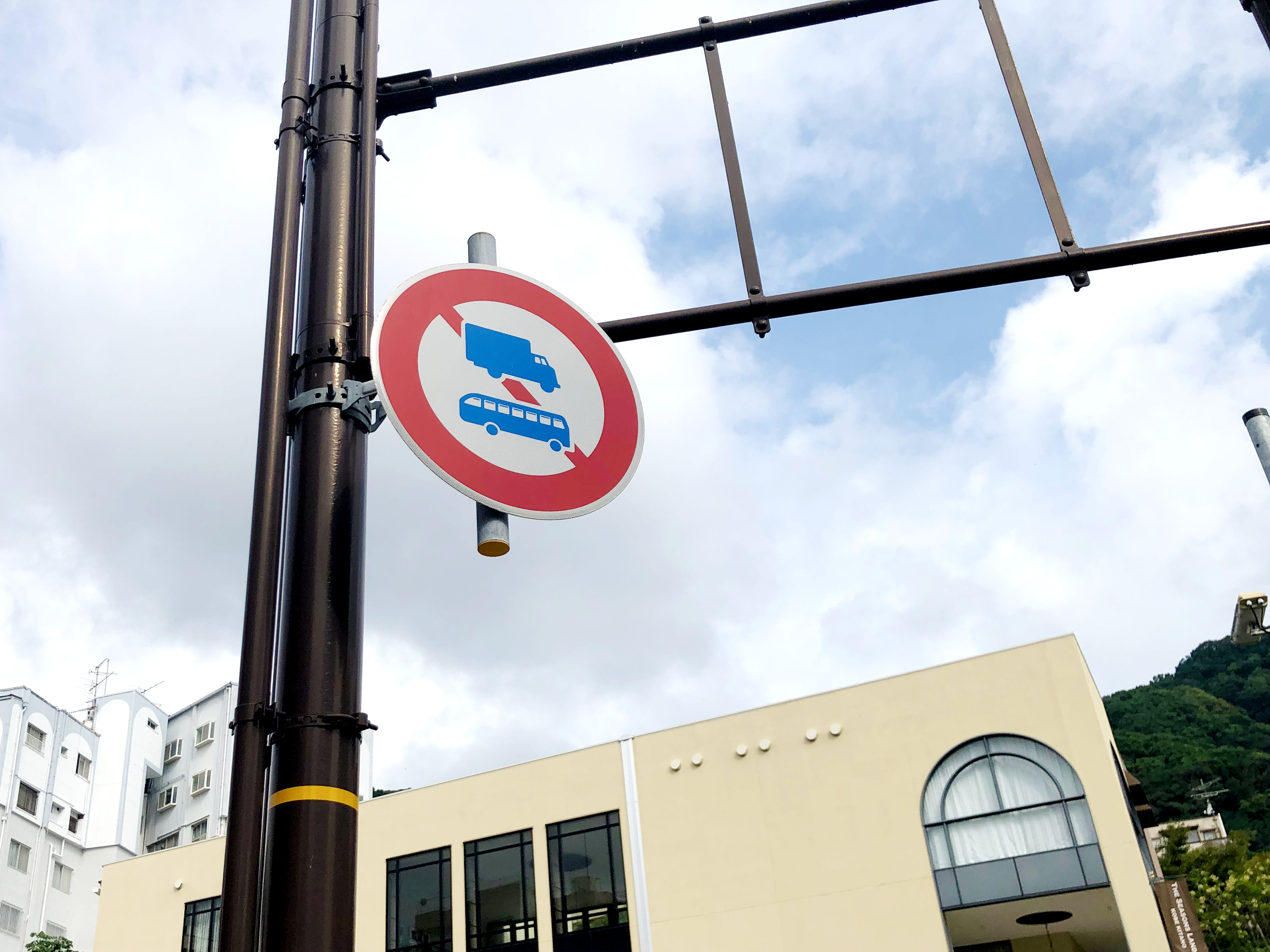 貨物自動車等と大型乗用自動車通行止めの道路標識です。